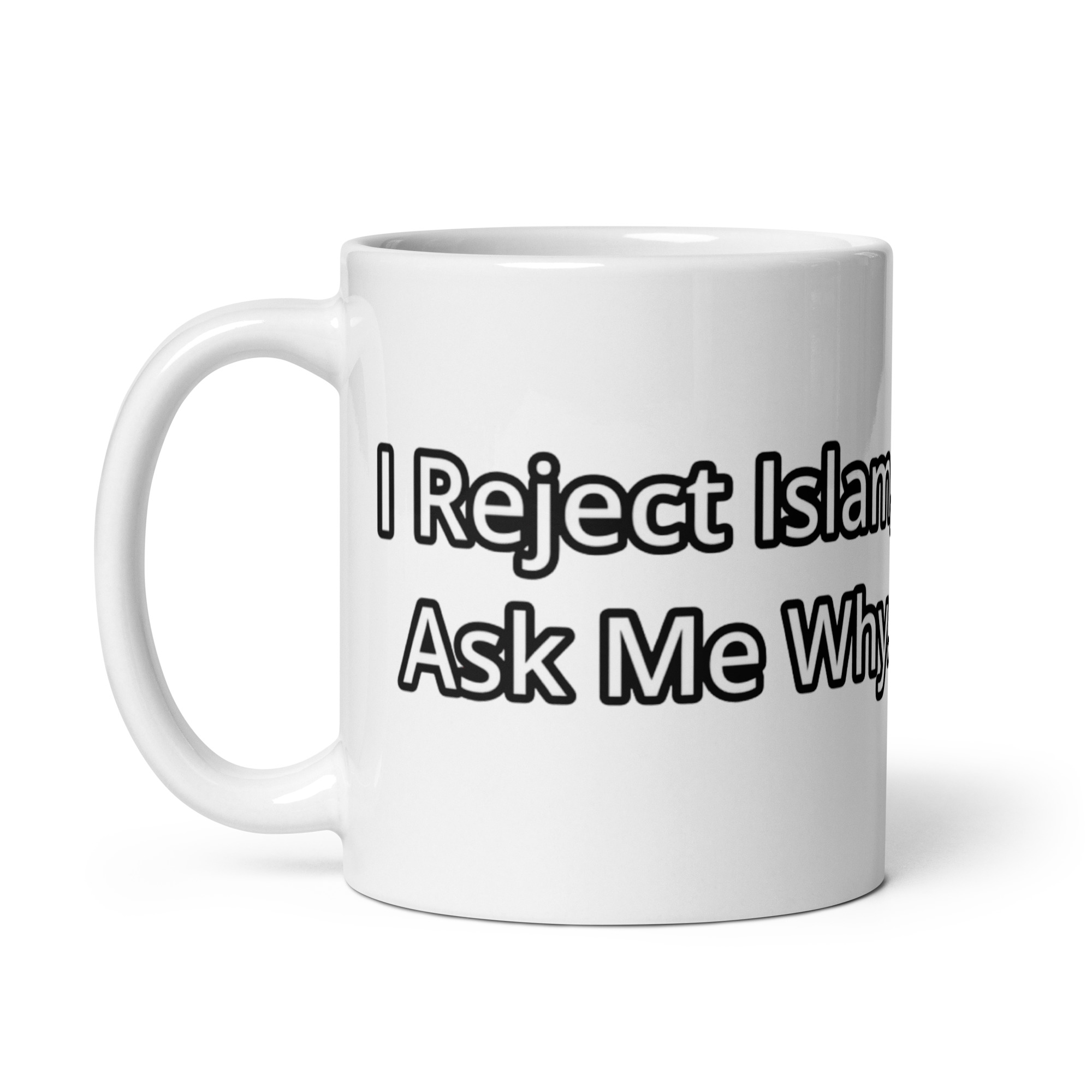 White I reject Islam mug