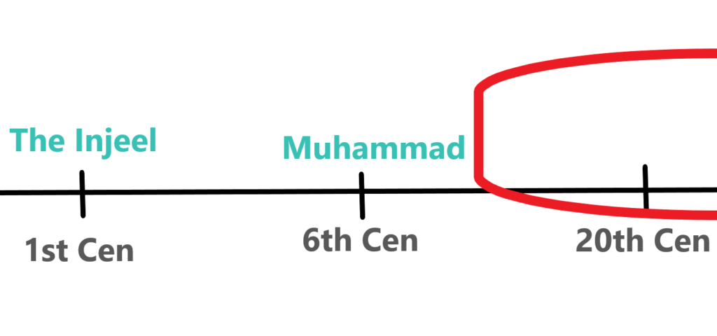 This “true Injeel” was put on paper around the time of Jesus, then made it all the way to Muhammad. So this book would have had to disappear after the Quran affirmed it. But if you actually think about that, it’s almost impossible for that to happen. For a book to be made in the first century Judaea, then make its way over to the 6th century Arabia, then immediately disappear without a trace of the physical book left, is extremely unlikely, if not impossible. The moment we find a physical trace of the “true Injeel,” my argument will fail. But that will never happen, becouse that Quran is talking about the Gospels of the Bible.